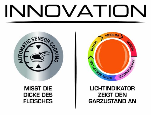 Die sogenannte „Automatic Sensor Cooking“ – Technologie optimiert die Temperatureinstellung und passt von ganz allein den Grillzyklus an die entsprechende Art des Grillgutes und speziell auch auf die Dicke an. Den derzeitigen Zustand Ihres Grillgutes können Sie während des ganzen Verlaufes anhand der sich entsprechend verändernden Farbanzeige im Kreise der Farblampe verfolgen.